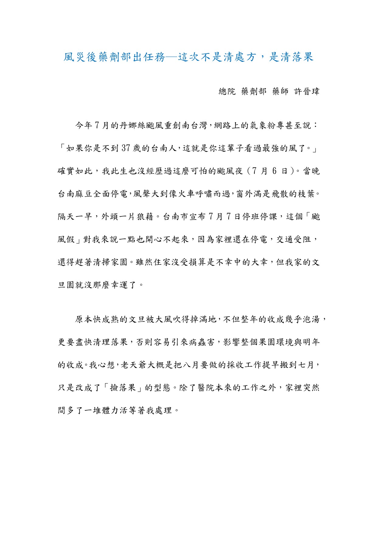 藥劑部大小事